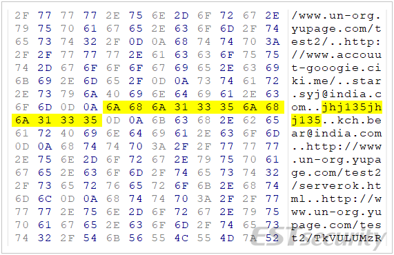 일부 인도 메일 서버와 구글 지메일에 중국식 이름의 아이디를 사용했습니다. 그리고 이곳에서도 암호코드가 발견이 되는데, 인도 메일 'rajue.migel@inda.com' 로그인 암호로 'wjsgurwls135' 알파벳+숫자 문자열을 사용합니다.