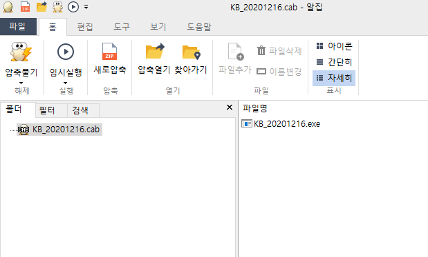 첨부 파일을 확인해 보면 윈도우에서 소프트웨어 설치에 사용되는 Windows 캐비닛('.cab') 파일이 존재하며, 이 파일은 실행파일인 exe 파일을 포함합니다.