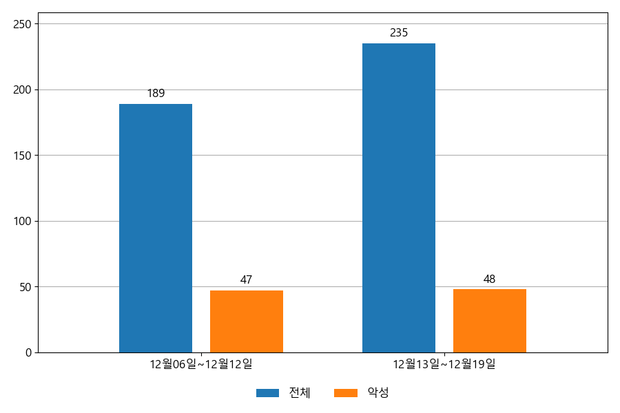 ESRC에서는 자체 운영 중인 이메일 모니터링 시스템의 데이터를 통해 이메일 중심의 공격이 어떻게 이루어지고 있는지 공유하고 있습니다. 다음은 12월 13일~12월 19일까지의 주간 통계 정보입니다.