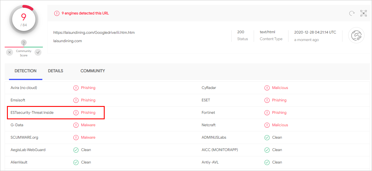 현재 이스트시큐리티 ‘쓰렛 인사이드(Threat Inside)’에서는 해당 피싱사이트를 아래와 같이 탐지하고 있습니다.