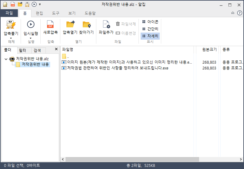 만일 이용자가 최종 압축 파일에 있는 ‘이미지 원본(제가 제작한 이미지)과 사용하고 있으신 이미지 정리한 내용.exe’, ‘저작권법 관련하여 위반인 사항들 정리하여 보내드립니다.exe’을 클릭할 경우 파일 암호화 기능의 Makop 랜섬웨어가 실행됩니다.