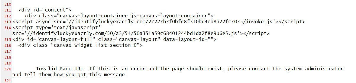 공격자는 아래와 같이 발견되지 않은 모든 페이지에 악성 스크립트를 삽입하는 방식으로 포럼을 훼손했습니다.