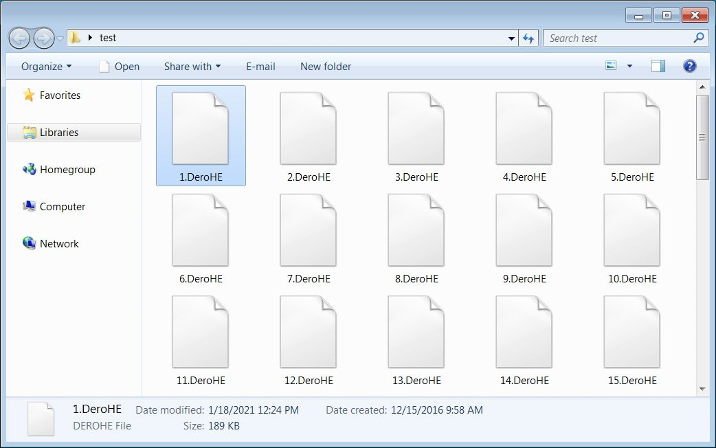<DeroHE 랜섬웨어로 암호화된 파일>