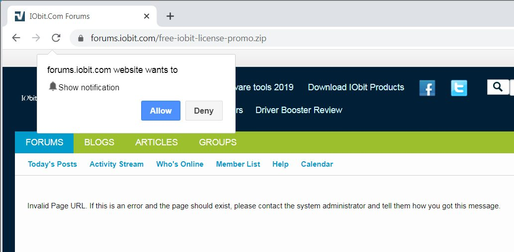 현재도 해당 포럼은 해킹된 상태로 보입니다. 404 에러 코드를 리턴하는 누락된 페이지를 방문할 경우, 웹 페이지는 여전히 브라우저 알림을 구독하라는 대화 창을 표시합니다. 이를 구독하면 브라우저에서 성인 사이트, 악성 소프트웨어 및 기타 원하지 않는 콘텐츠를 홍보하는 데스크톱 알림을 받기 시작할 것입니다.