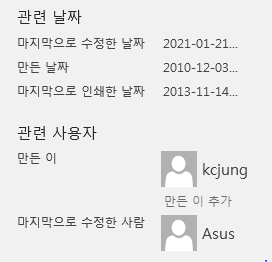 당시 발견된 악성 문서 파일과 Tactics, Techniques, Procedures (TTPs)가 연관되었습니다. 악성 문서파일의 마지막 수정자 계정이 'Asus'로 동일합니다.