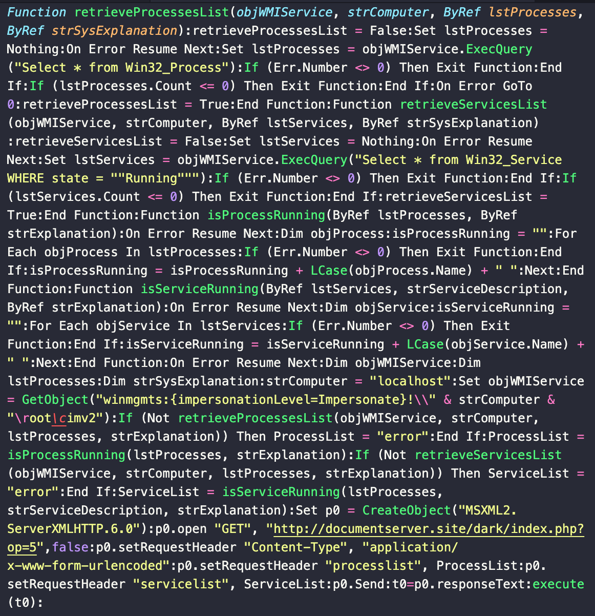 해당 VBS 스크립트 명령에 의해 'documentserver[.]site' 서버로 통신을 수행하게 됩니다. 여기서 사용된 'op=5' 인자 유형은 탈륨 조직의 스모크 스크린(Smoke Screen) 캠페인과 비슷합니다.