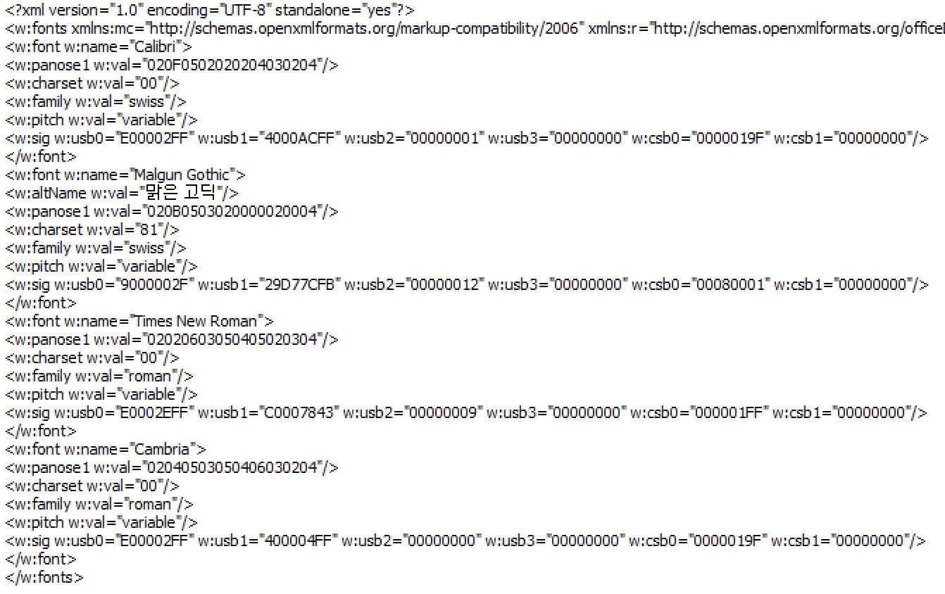 이 악성 doc 문서의 만든이 이름은 'Mickey' 계정이고, 동일한 시점과 만든 이름에서 제작된 다른 doc 문서 파일에서 북한의 글꼴(폰트)인 '청봉체(KP CheongPong)'가 적용된 테스트용 파일이 발견됐습니다.