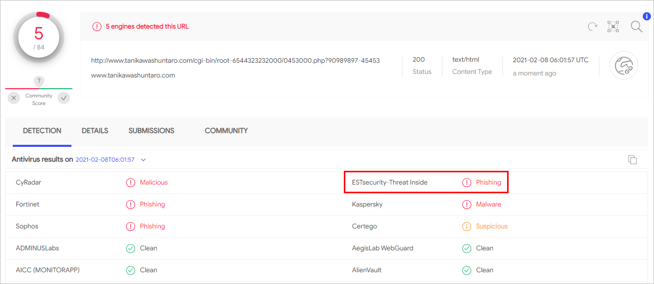 현재 이스트시큐리티 ‘쓰렛 인사이드(Threat Inside)’에서는 해당 개인 정보 수집 사이트를 아래와 같이 탐지하고 있습니다.