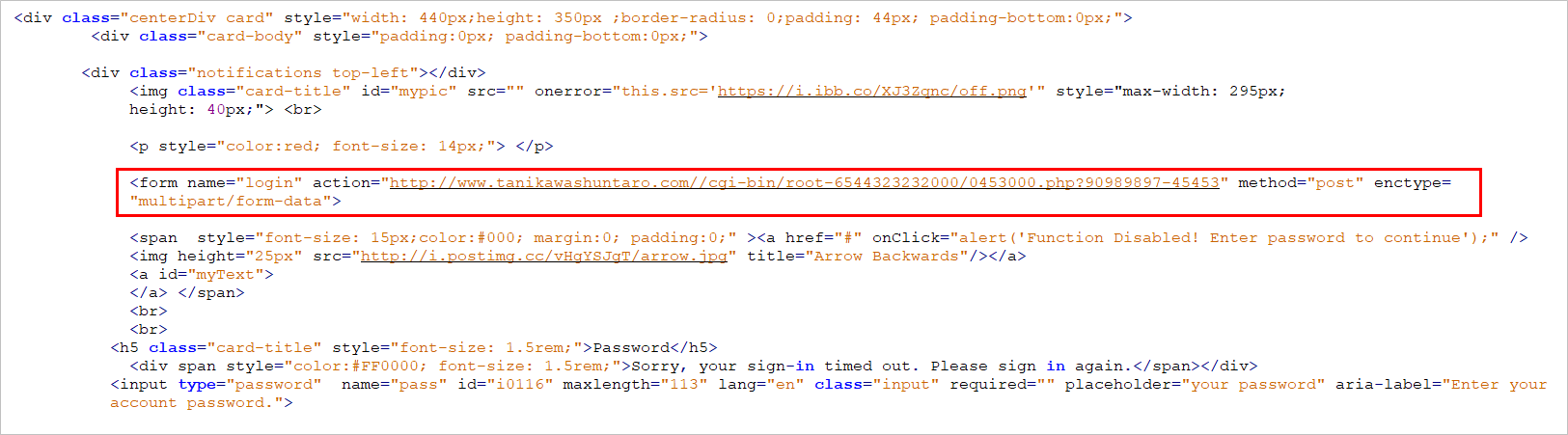 이번에 제작된 피싱 페이지는 이전과 마찬가지로 보안 시스템의 탐지를 회피하기 위해 사용자가 입력 한 정보들이 전달하는 서버 주소를 모스(Morse) 코드를 이용하여 난독화하였습니다.
