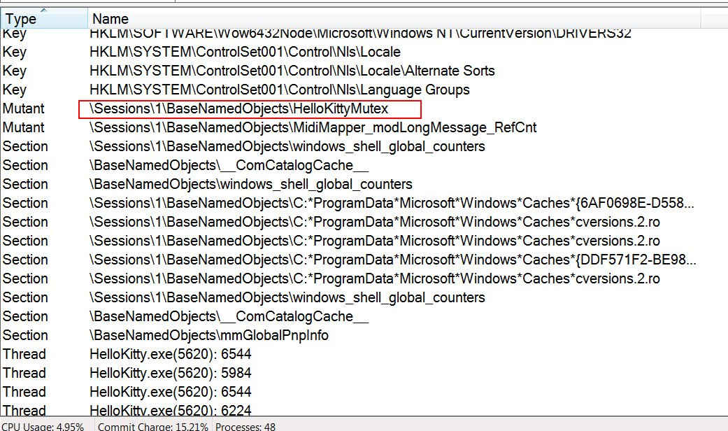 <프로세스 탐색기에 표시된 HelloKitty 뮤텍스>
