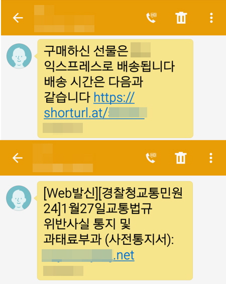 1월 들어 택배 스미싱 문자들의 내용은 구매한 상품 등을 주요 키워드로 하고 있습니다.