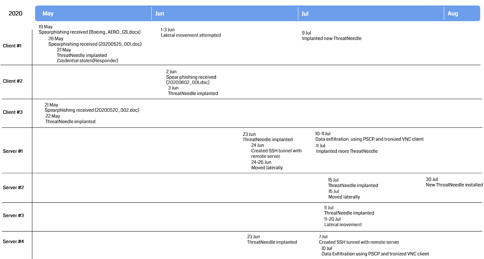 북한의 해킹 그룹이 민감 정보를 수집하는 것을 목표로 2020년 초부터 ThreatNeedle이라는 커스텀 백도어 악성코드를 이용하여 방위 산업체를 노리고 있는 것으로 나타났습니다.