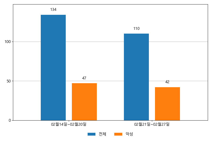 ESRC에서는 자체 운영 중인 이메일 모니터링 시스템의 데이터를 통해 이메일 중심의 공격이 어떻게 이루어지고 있는지 공유하고 있습니다. 다음은 02월 21일~02월 27일까지의 주간 통계 정보입니다.