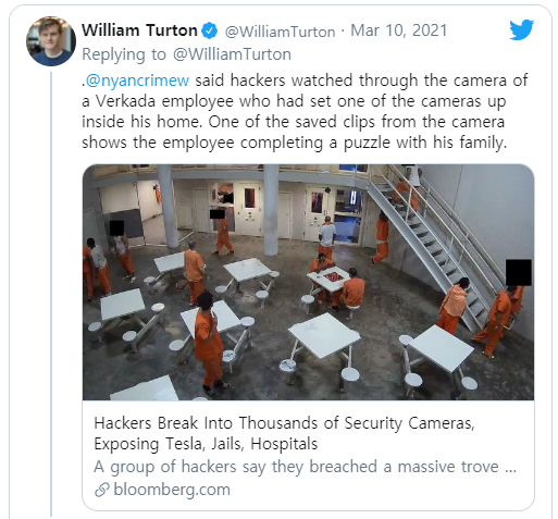 "오늘 오후, 우리는 주요 진입점 및 Cloudflare의 사무실 다수를 모니터링 하는 Verkada의 보안 카메라 시스템이 해킹되었을 수 있다는 경고를 받았습니다.”