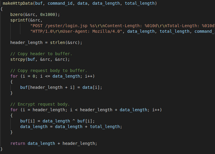 또한 이 악성코드는 C2 IP 주소와 포트를 담은 암호화된 환경설정과 TCP 소켓을 통해 연결을 설정하기 전 C2 서버에 인증하는데 필요한 비밀번호를 포함하고 있습니다.