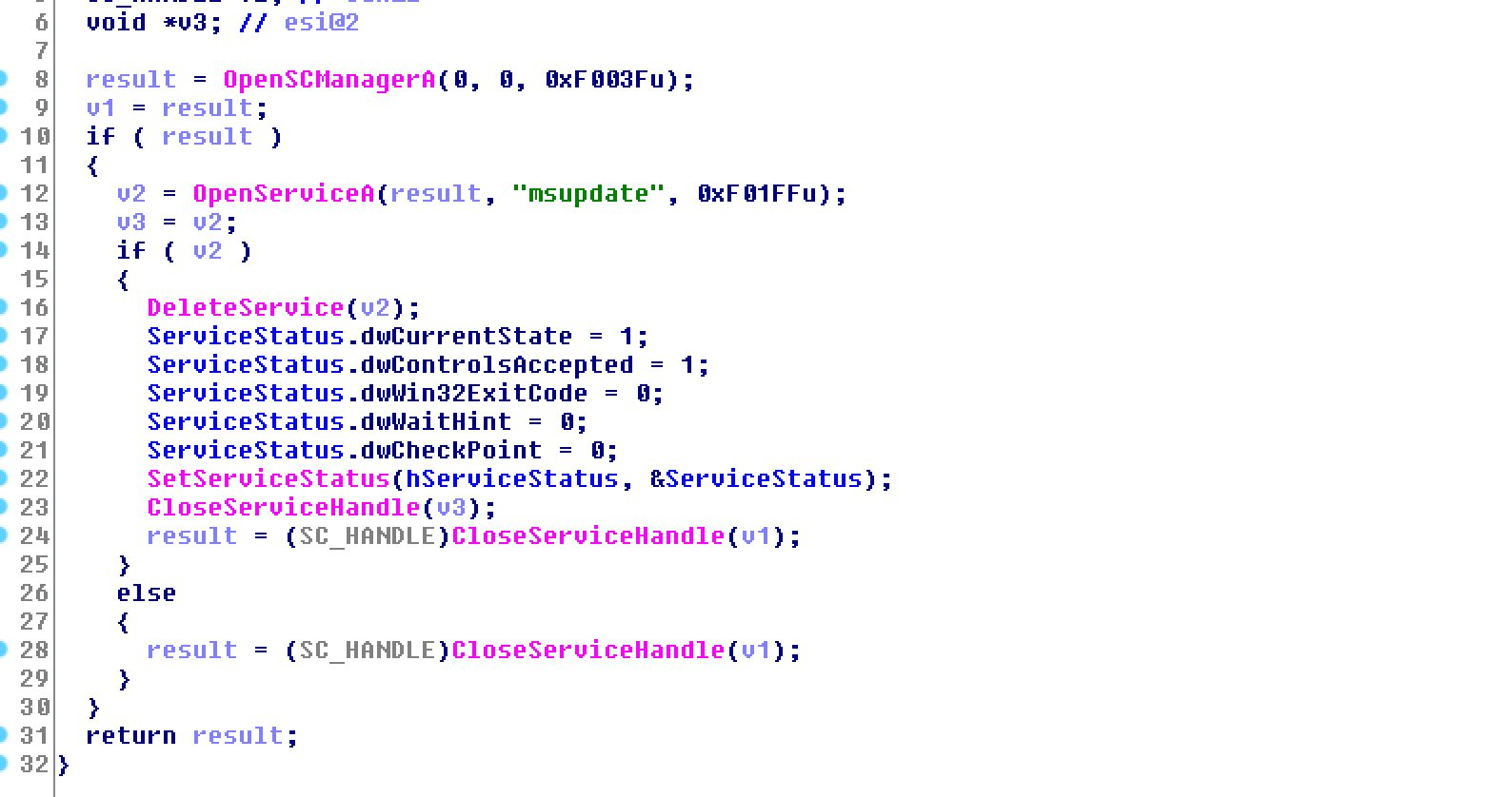 Advanced Intel의 Vitali Kremez에 따르면, DearCry 랜섬웨어는 시작된 후 ‘msupdate’라는 윈도우 서비스를 종료하려 시도합니다. 이 서비스가 어떠한 기능을 수행하는지는 아직까지 알려지지 않았지만, 정식 윈도우 서비스는 아닌 것으로 보입니다.
