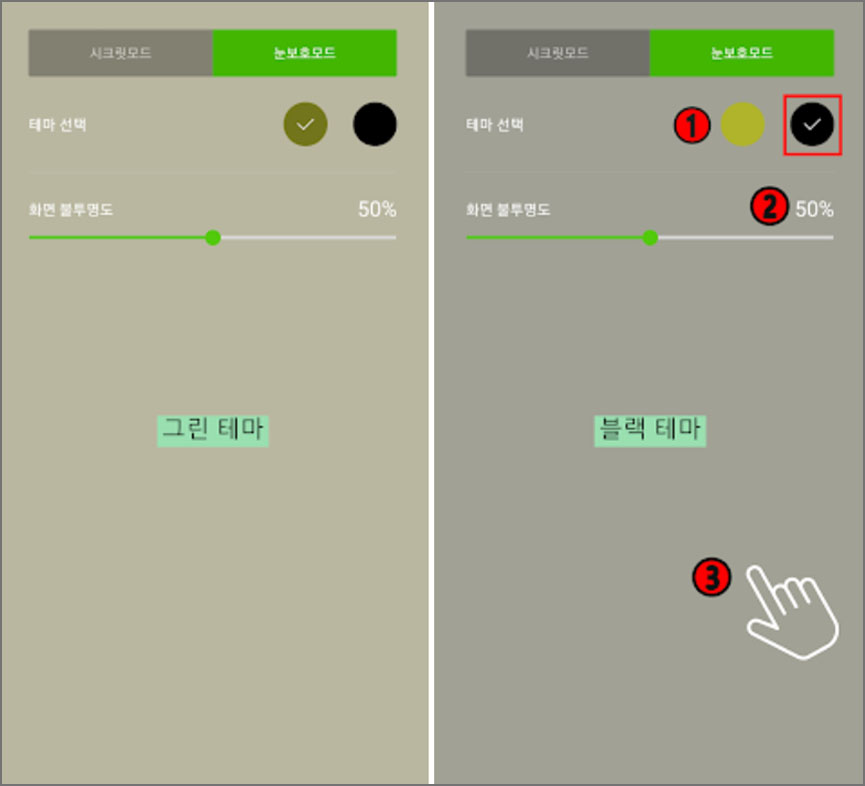 - 화면 불투명도를 설정한다. (좌우로 스와이프)