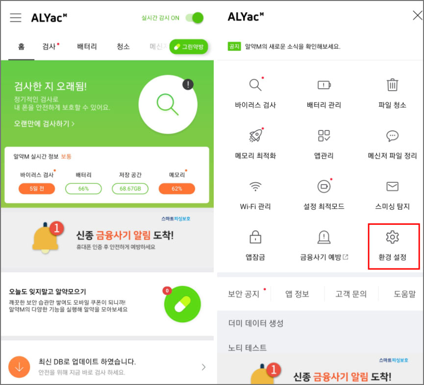 환경 설정에서 메뉴를 편집하여 내가 자주 사용하는 메뉴는 앞에 두고 사용할 수 있으니, 직접 알약M에 들어가지 않아도 되어 편리하겠죠?
