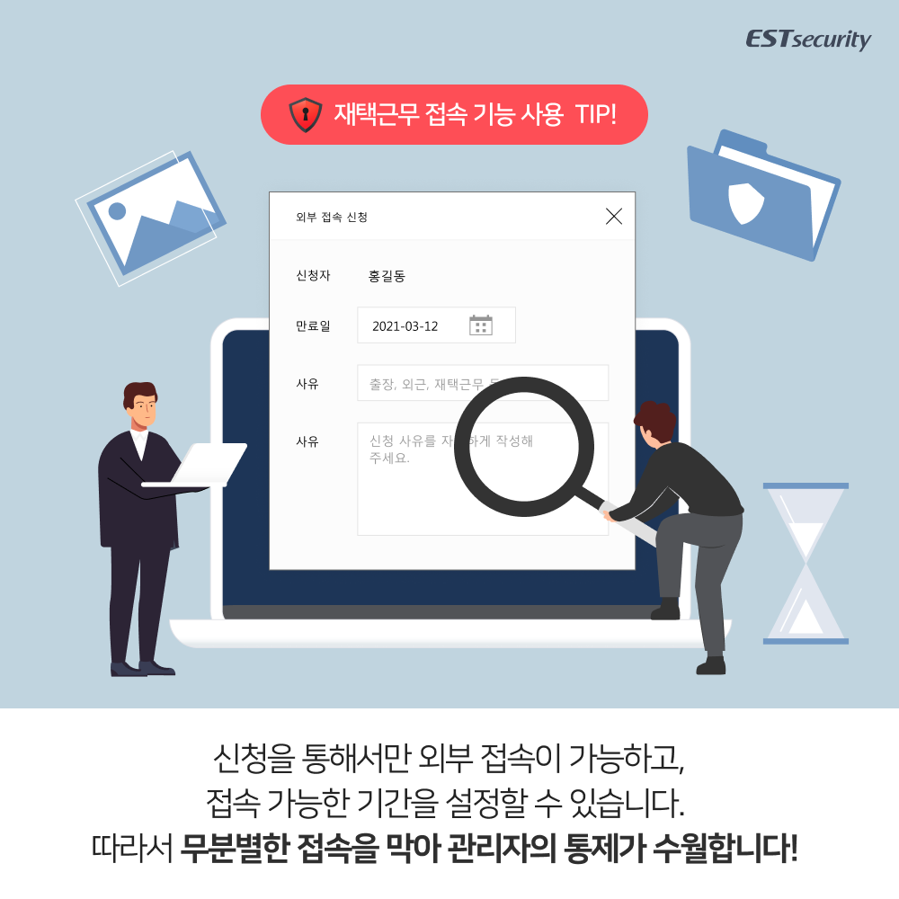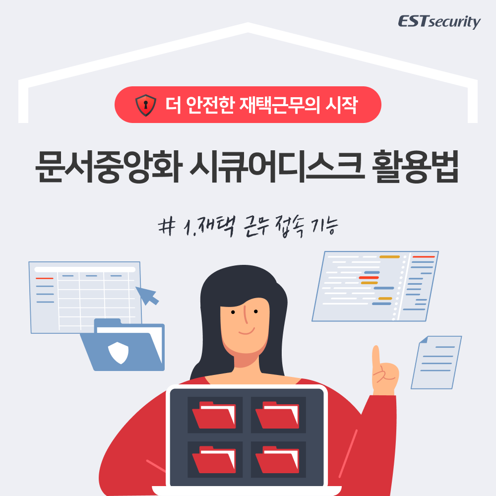 이스트시큐리티에서 문서중앙화 솔루션으로 더욱 안전하게 재택근무를 시작하는 방법을 시리즈 카드뉴스로 제시합니다.
