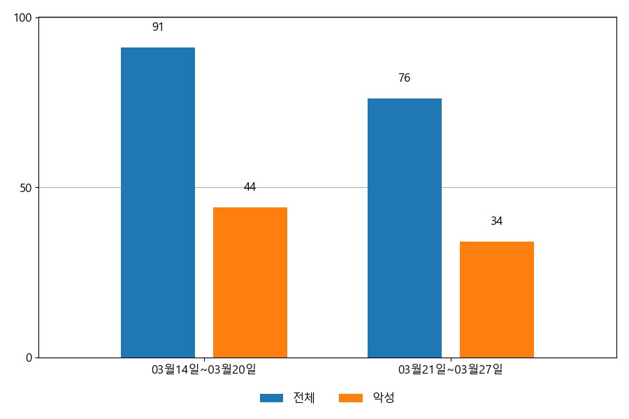 ESRC에서는 자체 운영 중인 이메일 모니터링 시스템의 데이터를 통해 이메일 중심의 공격이 어떻게 이루어지고 있는지 공유하고 있습니다. 다음은 03월 21일~03월 27일까지의 주간 통계 정보입니다.