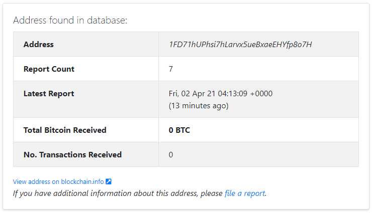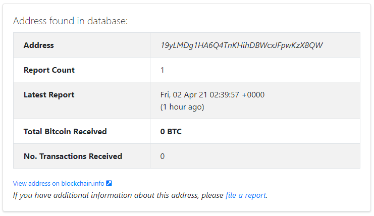 현재까지 발견 된 이메일에서 확인된 비트코인의 주소는 총 2가지로써, 아직까지는 수익이 없는 주소로 확인되고 있습니다.