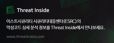 안녕하세요? 이스트시큐리티 시큐리티대응센터(이하 ESRC)입니다.
