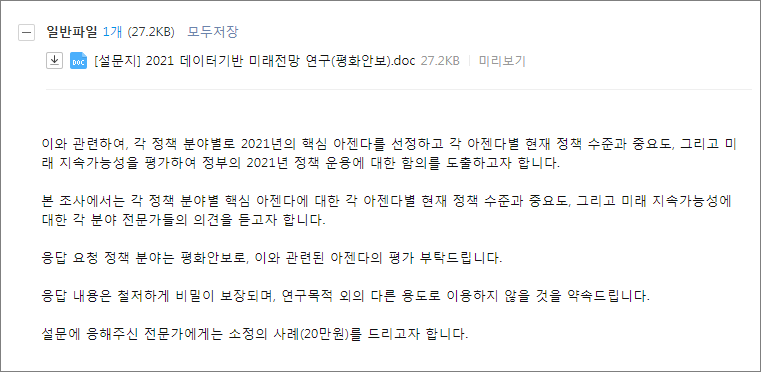 처음 이메일에 보내는 설문지 안내 파일에는 위협 요소가 없는 정상 문서를 첨부해 의심은 낮추고 신뢰도를 높입니다.