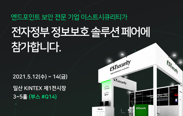 이스트시큐리티에서 오는 5월 12일(수)부터 14일(금)까지, 제 9회 eGISEC 2021(전자정부 정보보호 솔루션 페어)에 참가하여 기업과 기관의 정보 자산을 보다 강력하고 확실하게 보호하는 방법을 제시합니다.