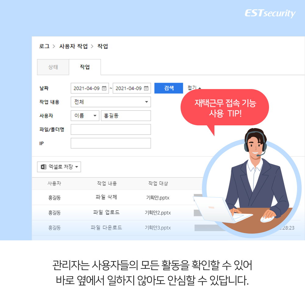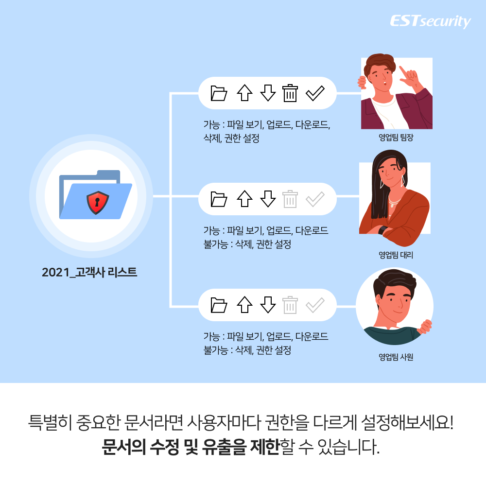 이스트시큐리티에서 문서중앙화 솔루션으로 더욱 안전하게 재택근무를 시작하는 방법을 시리즈 카드뉴스로 제시합니다.