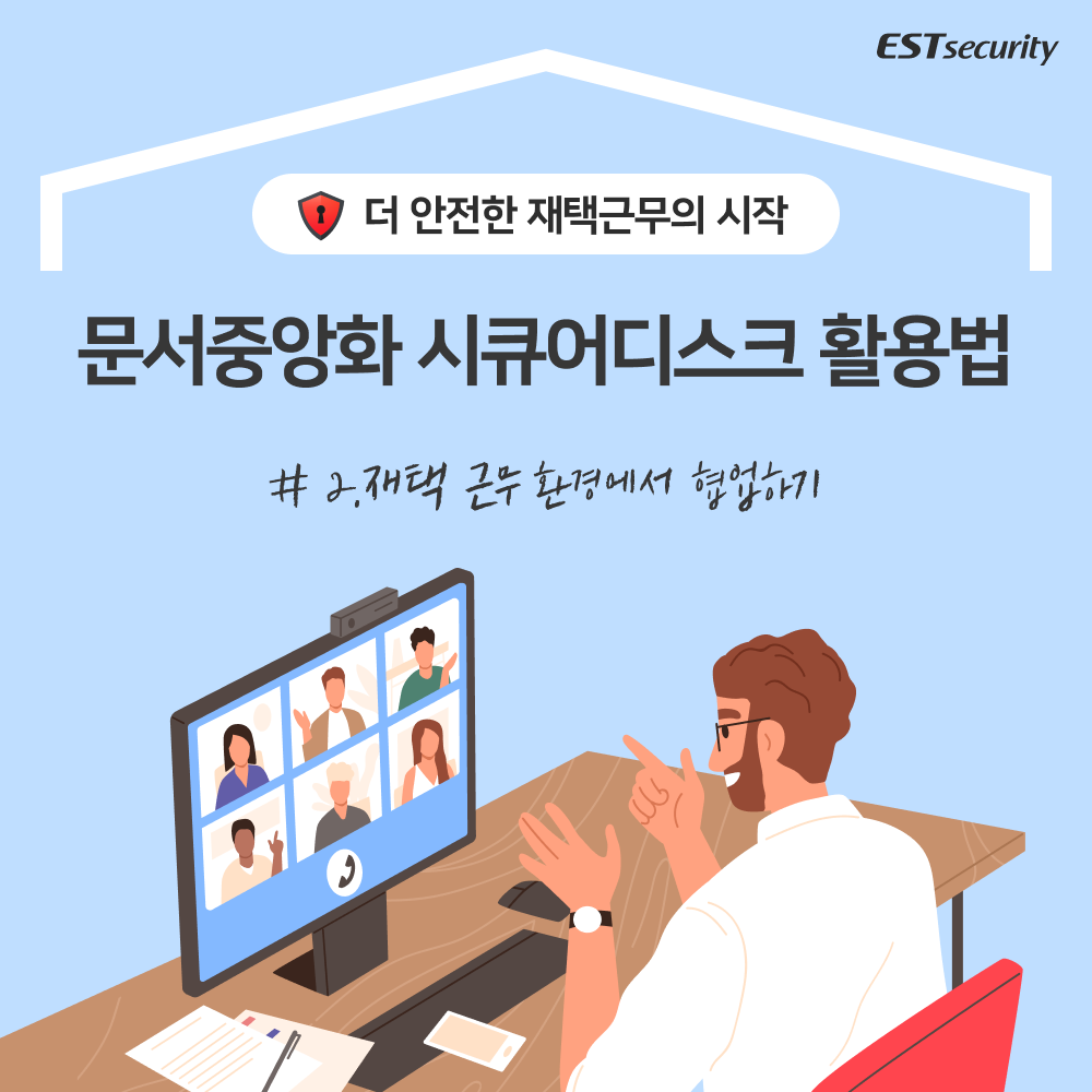 이스트시큐리티에서 문서중앙화 솔루션으로 더욱 안전하게 재택근무를 시작하는 방법을 시리즈 카드뉴스로 제시합니다.