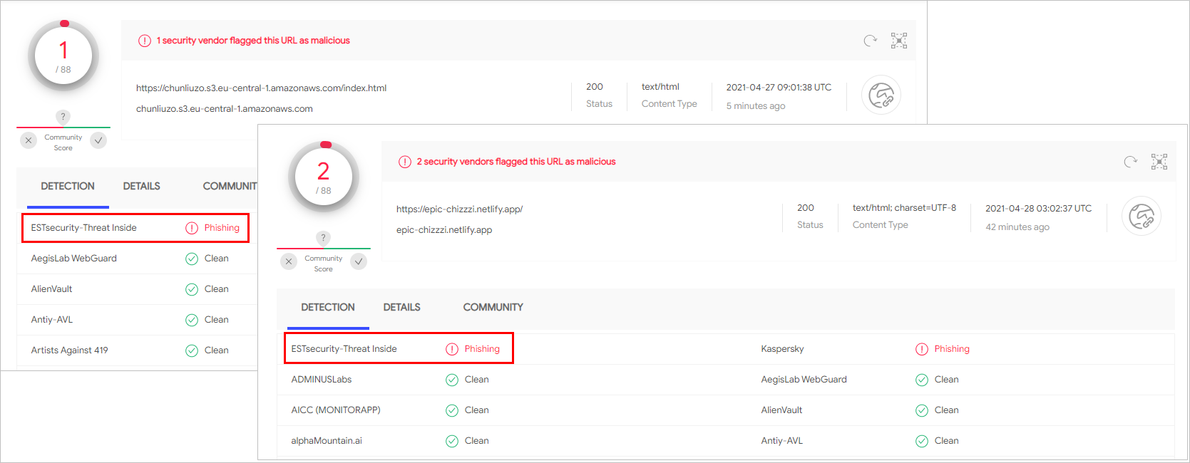 현재 이스트시큐리티 ‘쓰렛 인사이드(Threat Inside)’에서는 해당 피싱 사이트를 아래와 같이 탐지하고 있습니다.