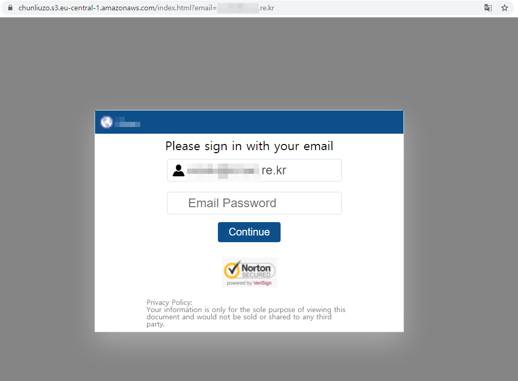 피싱 사이트 제작자는 메일을 발신한 계정의 사용자가 본문 링크를 클릭했을 경우, 수신자 도메인을 체크하여 사이트 뒷배경에 iframe 태그를 이용하여 정상적인 사이트 화면을 보여줌으로써 실제 회사 관련 메일로 착각할 수 있습니다.