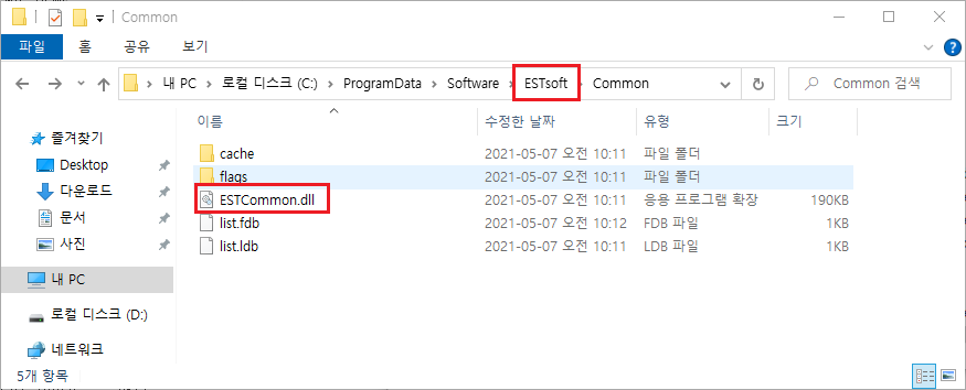 생성된 ‘glK7UwV.pR9’a파일은 C:\ProgramData\Software\ESTsoft\Common\ 경로에 마치 이스트소프트 업데이트 파일처럼 위장한 64비트 악성 DLL 파일을 추가하고 호출합니다.