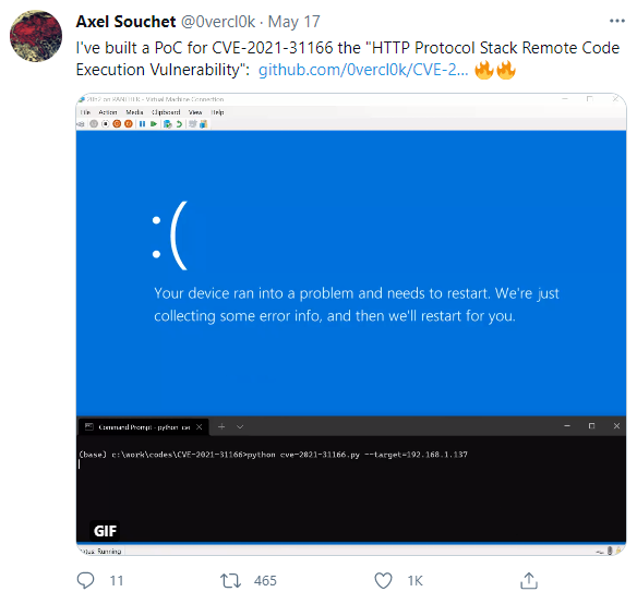 Expert released PoC exploit code for Windows CVE-2021-31166 bug