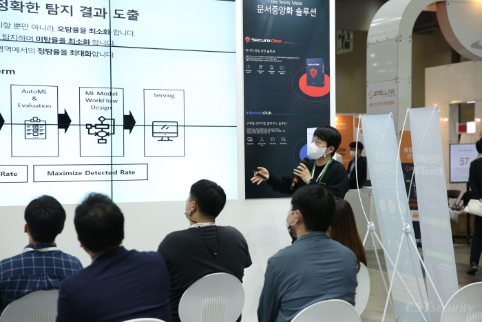 또한 이스트시큐리티 부스에서는 이스트시큐리티 솔루션을 처음 접하는 참관객분들의 이해를 돕고자 오전에는 '악성코드 위협 대응 솔루션, Threat Inside 소개', 오후에는 '문서클라우드 기반의 문서 관리/보안/재택근무 활용 사례'라는 주제로 매일 총 2차례씩 미니세미나가 진행되었습니다.