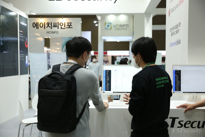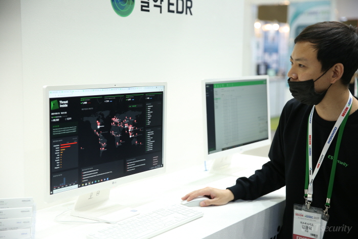 이번 전시회에서 이스트시큐리티는 기업과 기관의 정보 자산을 보다 강력하고 확실하게 보호하는 방법을 제시하였는데요. 이스트시큐리티 부스에서는 문서중앙화 솔루션 시큐어디스크&인터넷디스크와 악성코드 위협 대응 솔루션 Threat Inside와 결합하여 이상적인 엔드포인트 보안 체계를 구축하는 알약 EDR을 직접 확인할 수 있었습니다.