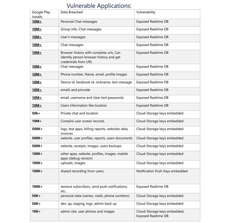 Check Point에 따르면, 이 문제는 실시간 데이터베이스, 푸시 알림, 클라우드 스토리지 키를 잘못 구성해 이메일, 전화번호, 채팅 메시지, 위치, 비밀번호, 백업, 브라우저 히스토리 및 사진이 유출되는 결과가 발생했습니다.