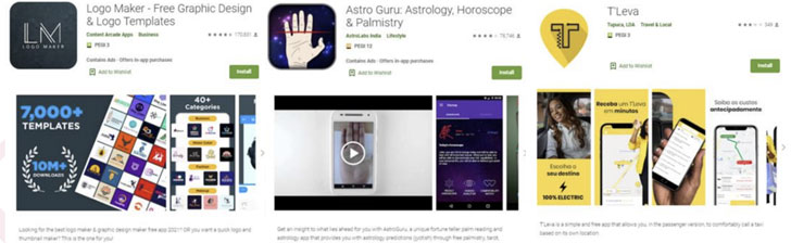 이번 조사 결과는 공식 구글플레이 스토어에서 제공된 안드로이드 애플리케이션 23개에 대한 연구 결과이며, 그 중 일부는 Astro Guru, iFax, Logo Maker, Screen Recorder, T'Leva와 같이 다운로드 수가 1만에서 1천 만에 달했습니다.