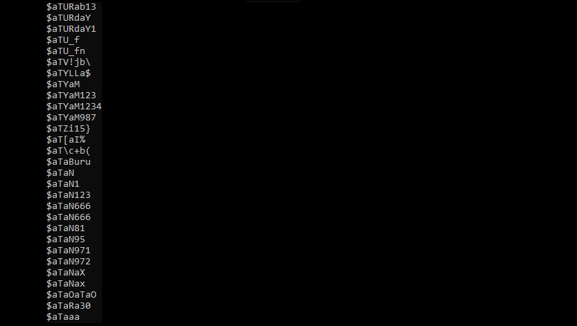 RockYou2021을 통해 유출된 비밀번호의 예는 아래와 같습니다.