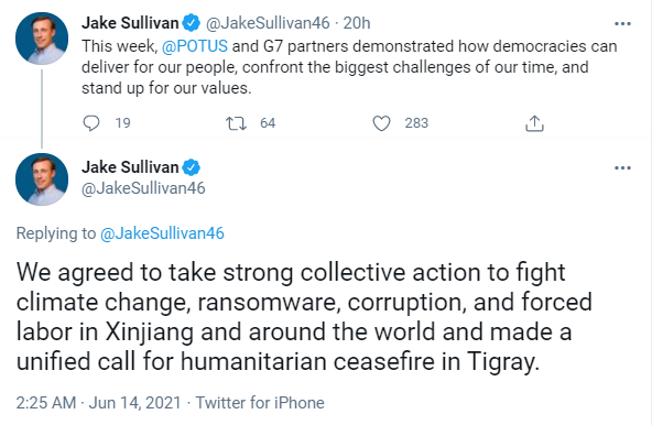 G7 정상(영국, 미국, 캐나다, 일본, 독일, 프랑스, 이탈리아)은 G7 콘월 정상회담에서 아래와 같이 밝혔습니다.