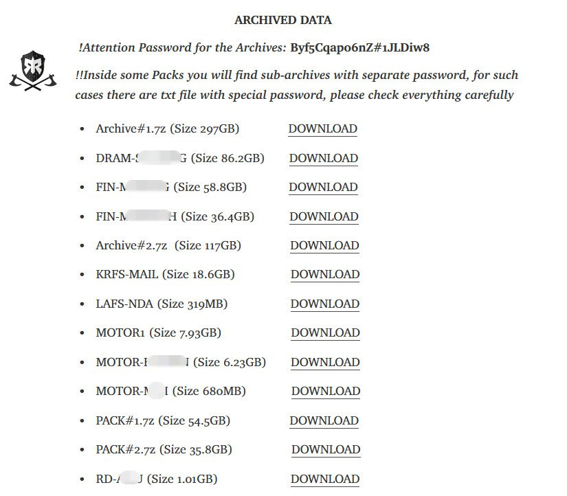 공격자가 게시판 파일의 메타데이터에 따르면, 가장 큰 아카이브는 300GB에 가까우며 파일 이름으로 내용을 유추할 수 없었습니다.