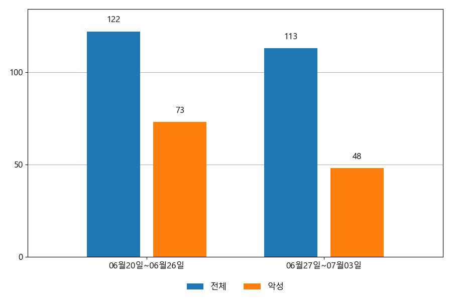 ESRC에서는 자체 운영 중인 이메일 모니터링 시스템의 데이터를 통해 이메일 중심의 공격이 어떻게 이루어지고 있는지 공유하고 있습니다. 다음은 06월 27일~07월 03일까지의 주간 통계 정보입니다.
