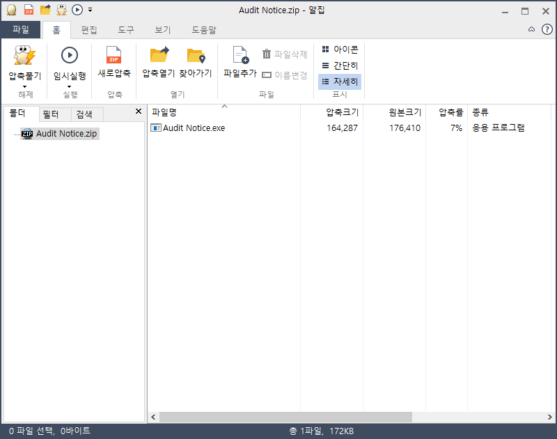 압축 파일 내에는 실행파일(.exe)이 포함되어 있습니다.