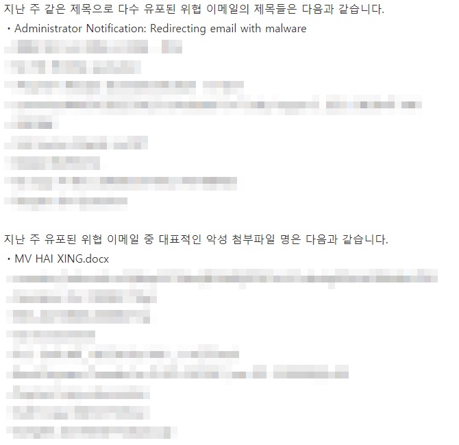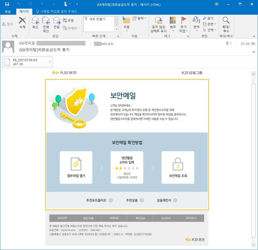 상기 이메일과 첨부파일을 확인할 경우 주의가 필요합니다.