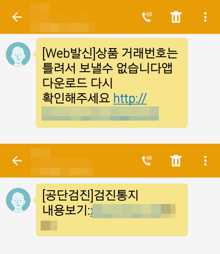 다음 그림은 발견된 스미싱 문자의 화면입니다.