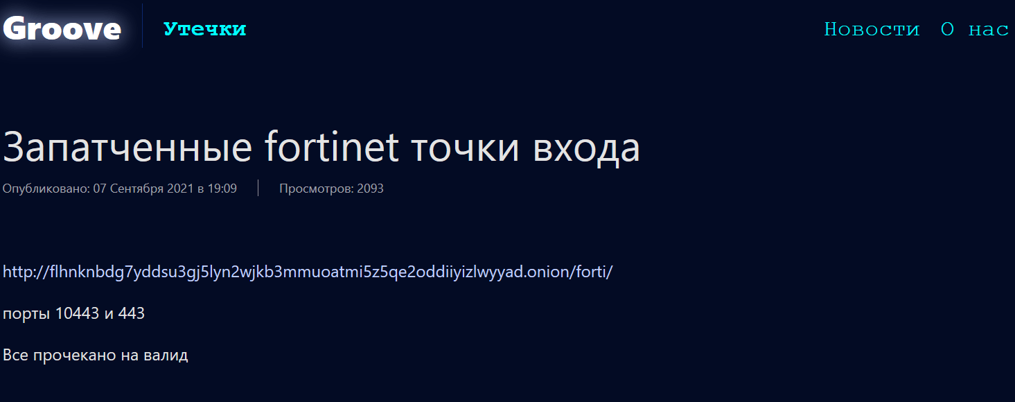 또한 SongBird는 RAMP 포럼에 Fortinet VPN 계정이 포함된 파일의 링크를 게시했습니다.