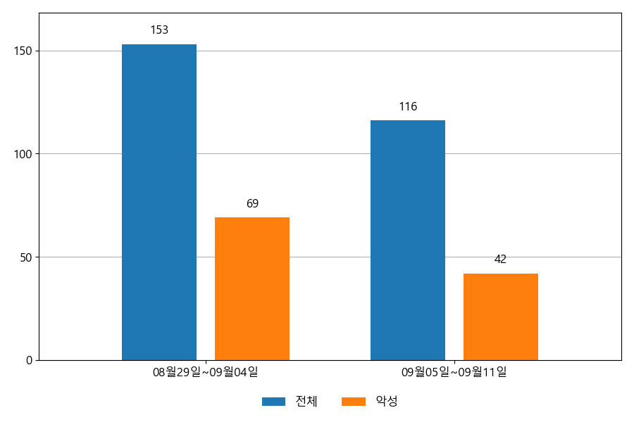 ESRC에서는 자체 운영 중인 이메일 모니터링 시스템의 데이터를 통해 이메일 중심의 공격이 어떻게 이루어지고 있는지 공유하고 있습니다. 다음은 09월 05일~09월 11일까지의 주간 통계 정보입니다.