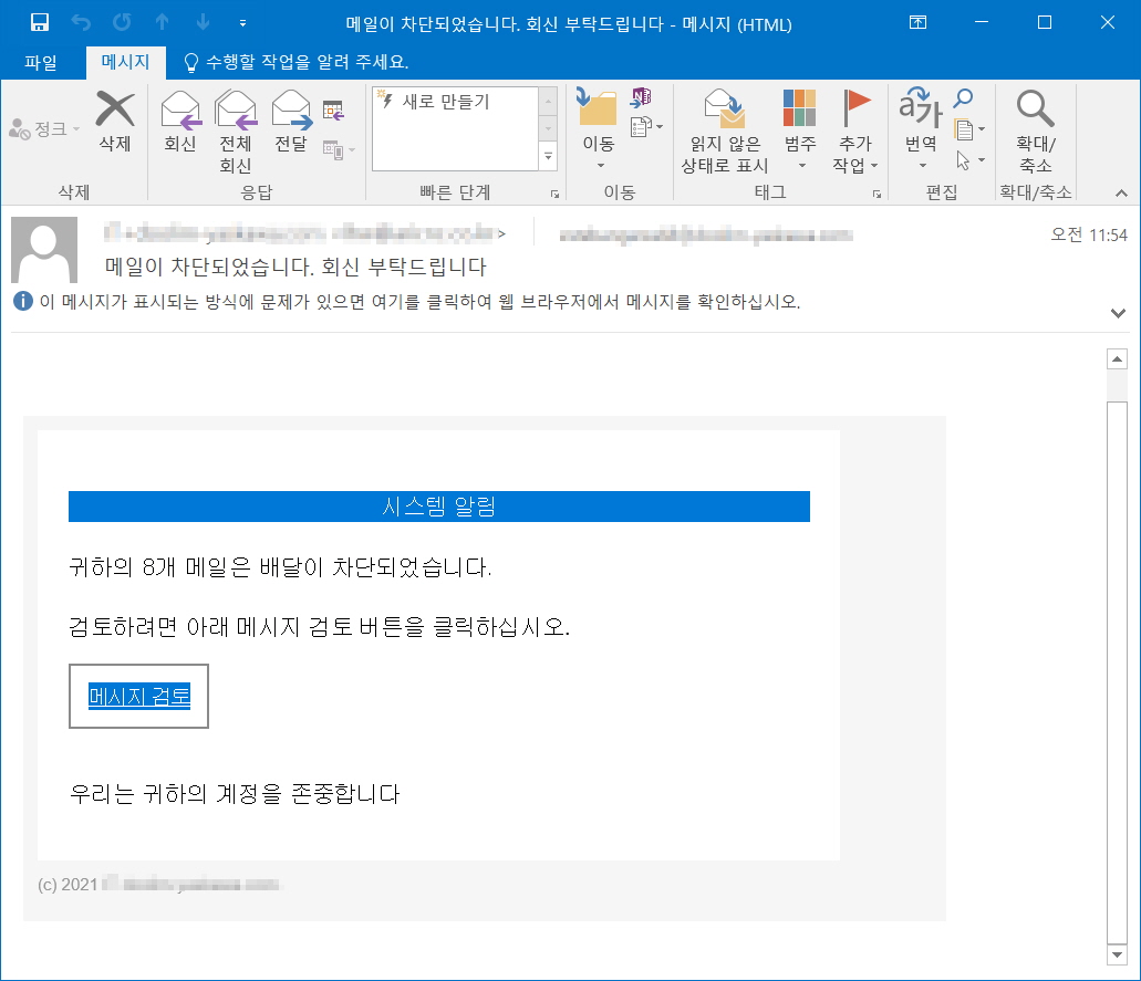 상기 이메일과 첨부파일을 확인할 경우 주의가 필요합니다.