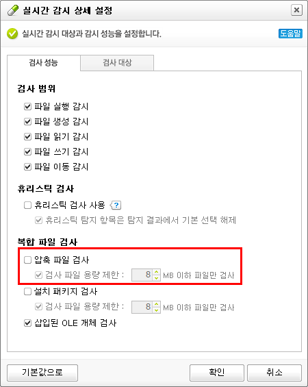 이중압축을 통한 악성코드의 공격을 방지하기 위하여, 알약 사용자여러분들께서는 알약 실시간감시 - 상세설정 - 압축파일 검사를 설정 해 놓는 것을 권장 드립니다.